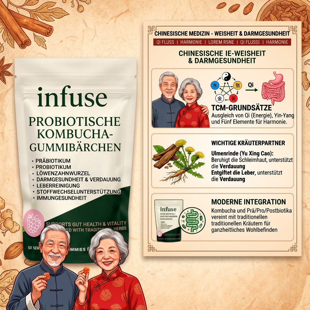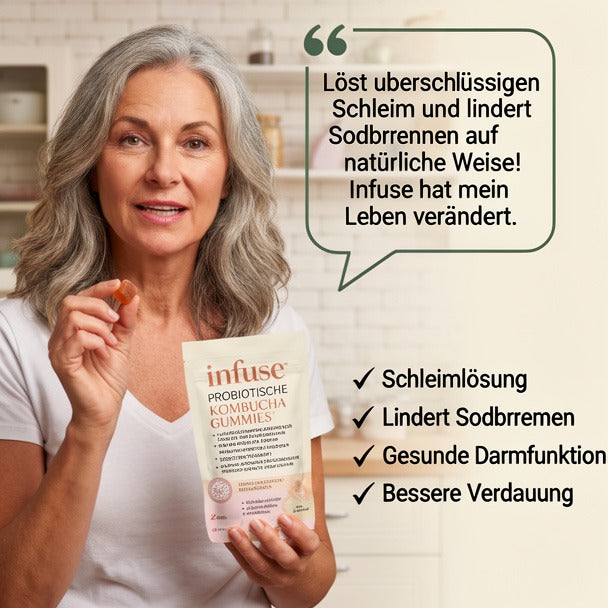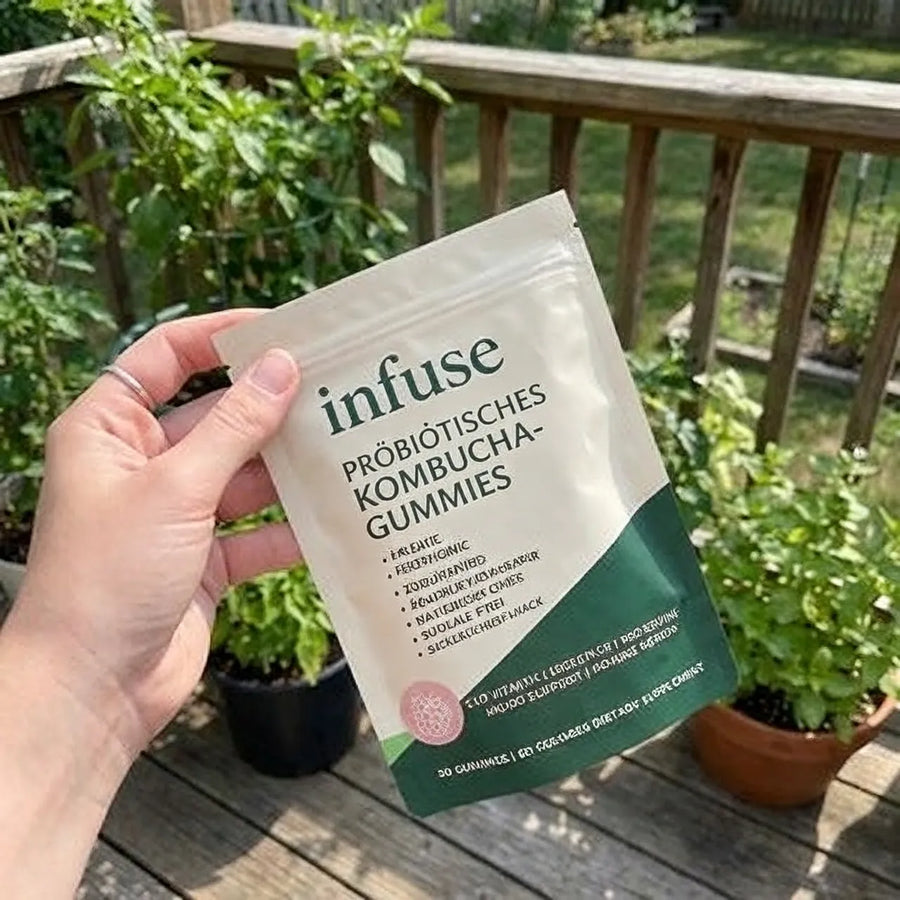 Als Gummie wird es zu einem einfachen täglichen Ritual.In Kombination mit Präbiotika, Probiotika und Postbiotika hilft es, nützliche Darmbakterien zu unterstützen, die Verdauung zu fördern und nach Mahlzeiten ein angenehmeres Bauchgefühl zu schaffen.Statt jeden Tag Kombucha zu trinken oder aufzubrühen, erhalten Sie gezielte Unterstützung für den Darm – in einer konsistenten Portion, die sich leicht in Ihren Alltag integrieren lässt.